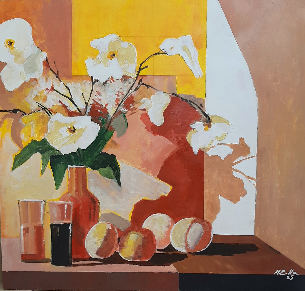 Fiori bianchi, 2025, Acrilico su legno