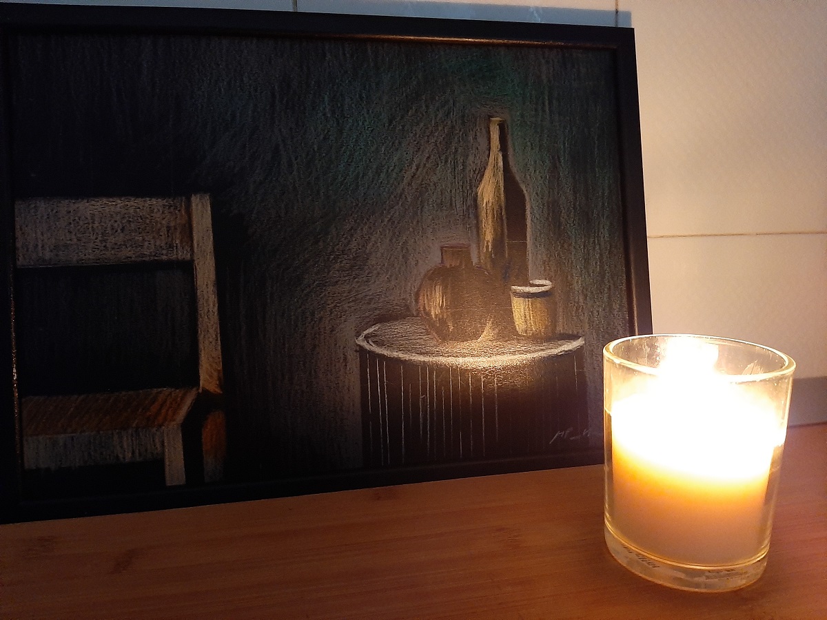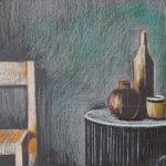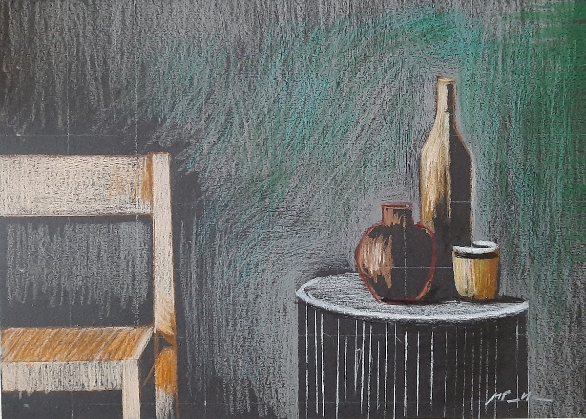 Natura morta con sedia, 2025, pastello su carta
