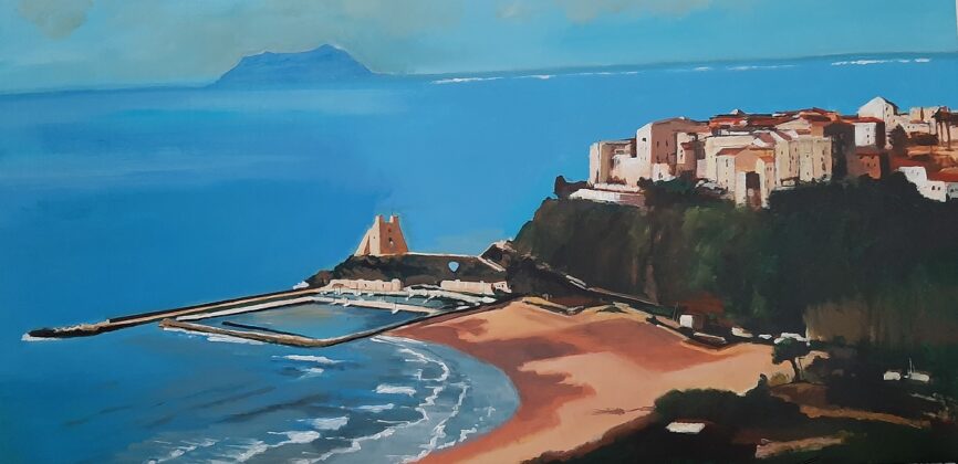 Tecnica: Colori acrilico su legno. Dimensioni: (2 metri per 100). Anno: 2025 – Collezione privata Sperlonga